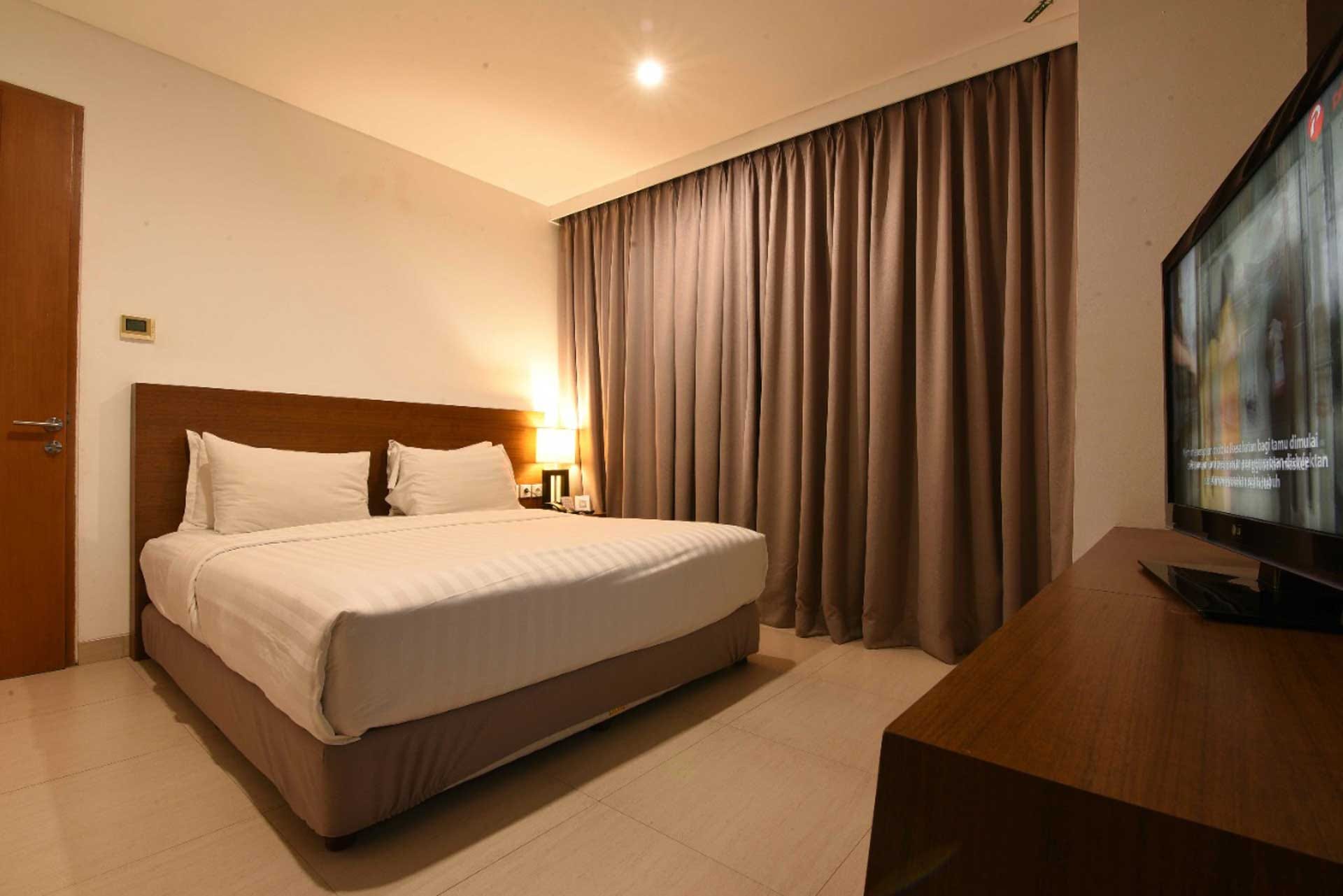 Enjoy extra comfort in our Deluxe Room, designed to provide a relaxing and convenient stay for both business and leisure travelers. The room features a cozy queen-sized bed or two single beds with high-quality linens, a private bathroom with hot and cold shower, and a functional work desk. Modern in-room amenities include air conditioning, a flat-screen TV with local and international channels, complimentary high-speed Wi-Fi, and coffee and tea-making facilities. With its clean, minimalist design and comfortable layout, the Deluxe Room offers a restful atmosphere in the heart of Tangerang, close to key business districts and lifestyle destinations.